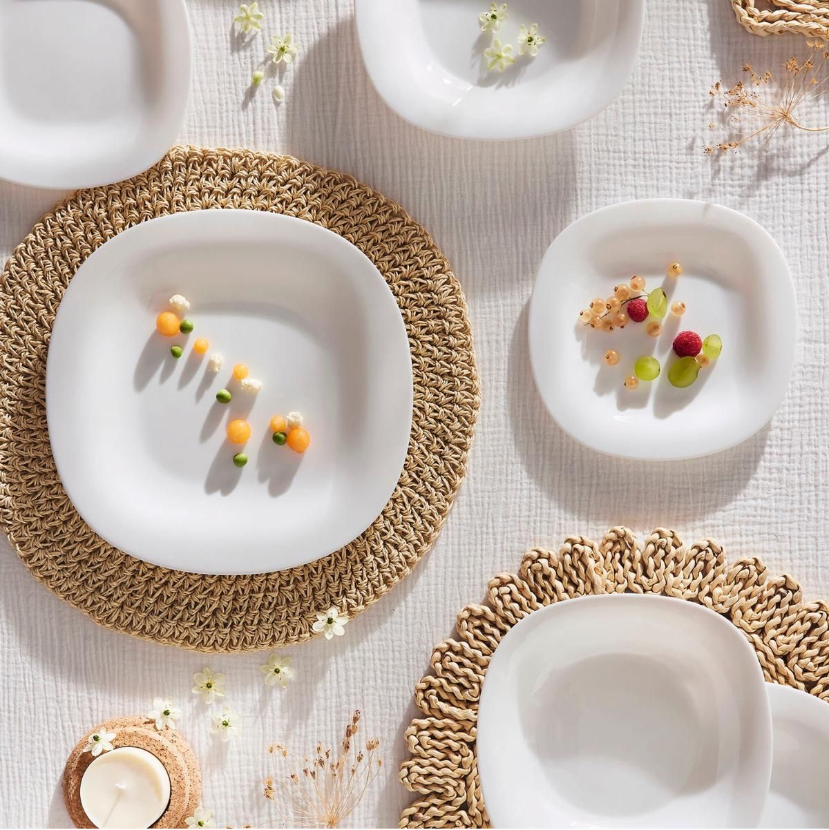 La vajilla modelo Carine de Luminarc es una opción elegante y práctica para tu mesa. Fabricada en Francia, esta vajilla está hecha de materiales de alta calidad, como vidrio, opal y bioplástico, garantizando durabilidad y resistencia. Su diseño cuadrado y acabado en brillo le otorgan un toque moderno y sofisticado, ideal para cualquier ocasión. Este set de 19 piezas está compuesto por 6 platos llanos, 6 platos hondos, 6 platos de postre y una ensaladera, lo que lo convierte en la opción perfecta para 6 personas.