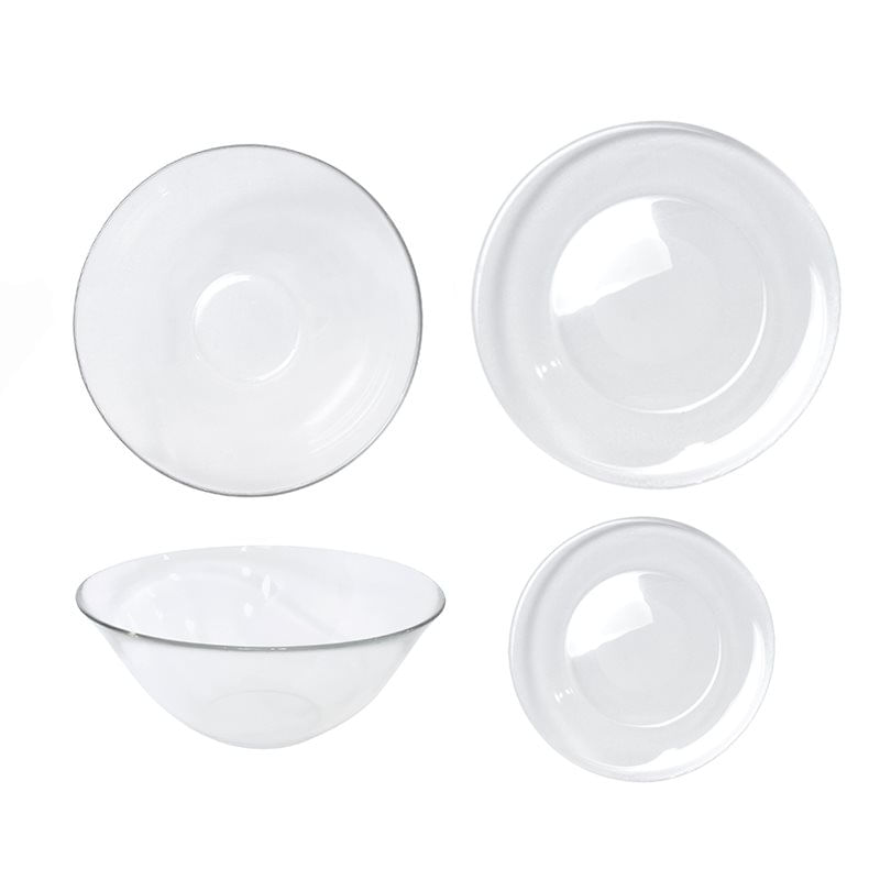 La vajilla es el reflejo de tu hogar, por eso las personas que tienen esta vajilla Costa de la marca Cok son personas que cuidan cada detalle. Está compuesta por 19 piezas divididas en 6 platos llanos, 6 platos hondos, 6 platos de postre y 1 ensaladera. Por ello, la vajilla está pensada para dar un servicio completo a 6 personas. Los platos son de color transparente, dándole un toque sencillo y minimalista. Todos ellos son muy resistentes al uso diario y aptos para lavavajillas y microondas. Consigue ahora esta elegante y efectista vajilla de vidrio templado y demuestra qué tipo de personalidad tienes.