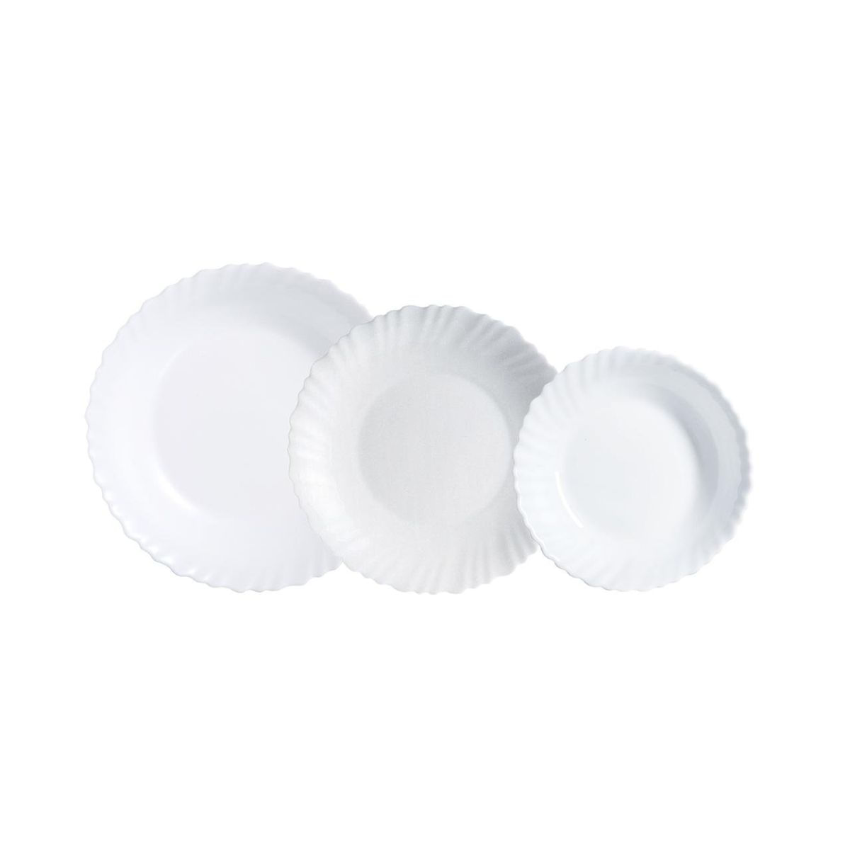 Crea una combinación de lo más encantadora en tu mesa con la vajilla modelo Feston de la marca Luminarc, delicadeza y tradición se combina en esta preciosa vajilla formada por 18 piezas entre las que encontrarás 6 platos llanos, 6 platos hondos y 6 platos de postre, ideal para servir hasta 6 personas alrededor de tu mesa. Fabricado en un resistente y duradero vidrio templado, esta vajilla esta diseñada para servir tus comidas favoritas y disfrutes junto a los tuyos. Fácil de limpiar, es apta tanto para lavavajillas, microondas y frigorífico por lo que podrás conservar tus comidas en el frío sin miedo a dañar la calidad de la vajilla. Además, su ligereza y finura la convierte en la vajilla estrella para tu día a día, no te pierdas la Feston de Luminarc todo un clásico con el que no fallarás.