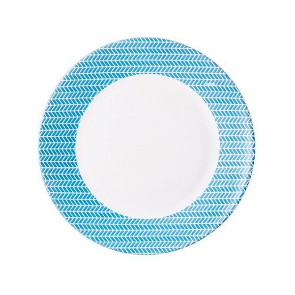 La vajilla Diana de Arcopal es perfecta para cualquier hogar ya que resiste el paso del tiempo y el uso de los lavavajillas sin resentirse. Los platos llano y hondo tienen una cenefa azul geométrica que es distinta en cada uno de ellos. Por su parte el plato de postre tiene el diseño azul geométrico en todo el diámetro.