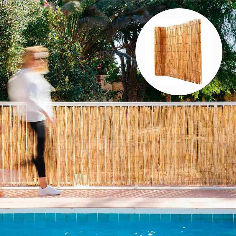 Estupenda valla de cañizo natural, muy práctica para tu patio. Esta útil valla tiene una amplia gama de funciones, tales como cercar el espacio de tu jardín privado, la decoración de tu patio, o dando un toque tropical al patio. Esta valla se puede unir fácilmente a más secciones iguales con lazos, grapas o tornillos para crear el perímetro de la longitud que necesitemos. Con una altura de 1,5 metros podremos cubrir hasta una altura elevada para mantener la privacidad de nuestro jardín manteniendo una buena estética. Esta valla es una solución ecológica y original para nuestro jardín y es muy resistente por lo que podremos estar seguros de disfrutarla durante mucho tiempo.