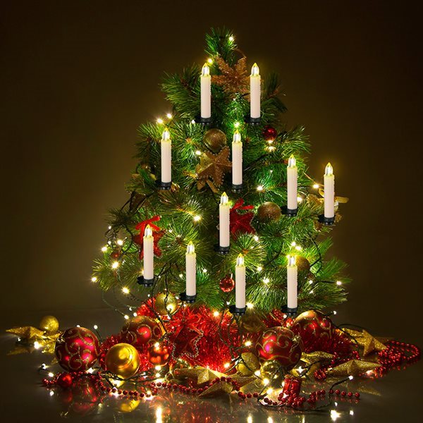 Velas decorativas para el árbol de Navidad o usos variados con luces LED de aspecto cálido. Se trata de un total de 16 piezas que le darán un toque de calidez a tu decoración. Están pensadas para utilizarse en decoraciones de interior e incorpora mando a distancia. Cada una de esas luces tiene un diseño en forma de vela y permanecen unidas al árbol a través de la pinza que incorpora su diseño en color negro; ideal para que se mimetice con las ramas del árbol. Convierte tu hogar en un lugar mágico estas navidades.