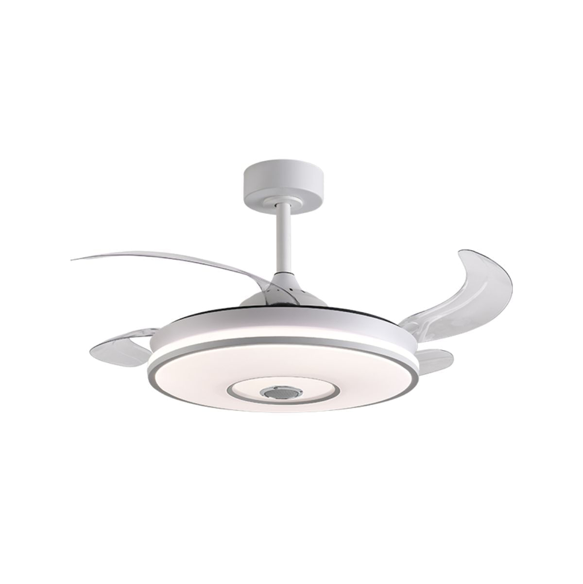 Descubre el innovador y original ventilador de techo modelo Colors de la marca Bel Air con altavoz incorporado, un ventilador super completo que se ajustará tanto a tus necesidades de ventilación como de iluminación. Con 4 aspas retráctiles que desplegadas ofrecen un diámetro de hasta 108 cm es ideal para amplios salones, comedores y habitaciones. Cuando dejas de utilizarlo o simplemente quieres disfrutar de su iluminación LED de 72W, sus aspas se contraen dejando útil un amplio diámetro de lámpara de 50 cm. Tendrás un mando a distancia para manejarlo desde donde quieras sin necesidad de moverte de tu sofá o cama.