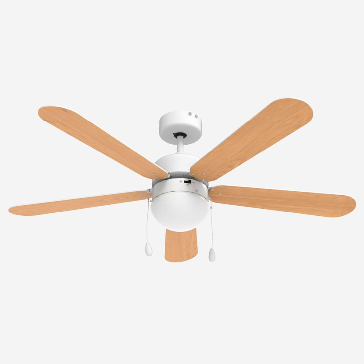 El ventilador de techo Etesios 6052W de Universal Blue combina potencia y elegancia para proporcionar un ambiente fresco en tu hogar. Con una potencia de 60W y una velocidad de ventilador de 190 rpm, este modelo ofrece un flujo de aire eficiente de 97m³/min, ideal para estancias de unos 25m². Su motor AC de alta calidad garantiza un rendimiento confiable y duradero, mientras que sus 5 aspas reversibles te permiten adaptar el estilo de tu espacio según tus preferencias. Además de ofrecer refrigeración, el Etesios 6052W viene equipado con una lámpara de 60W para proporcionar iluminación adicional a tu habitación. Con 3 velocidades de funcionamiento y el modo verano/invierno, este ventilador te ofrece comodidad durante todo el año, distribuyendo el aire de manera uniforme en los meses cálidos y ayudando a mantener el calor en los meses fríos. La instalación del Etesios 6052W es rápida y sencilla gracias a los accesorios incluidos que facilitan el montaje. Además, su funcionamiento silencioso crea un ambiente tranquilo y relajante en tu hogar. ¡Ya lo sabes! ¡Con el Etesios 6052W la comodidad en casa está más que asegurada!