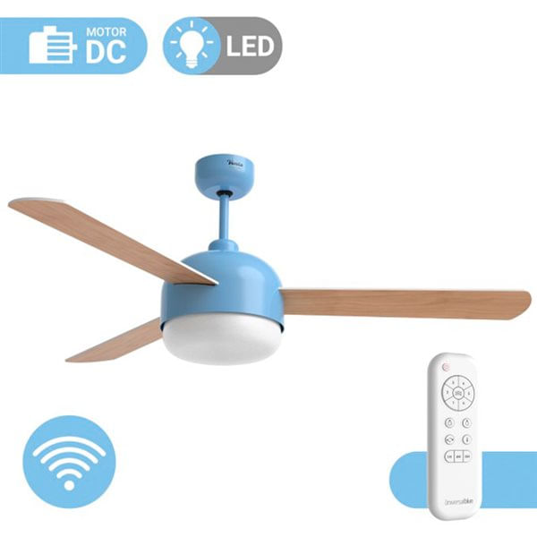 El ventilador de techo modelo Vento de la marca Universal blue viene con lámpara y cuenta con una potencia de 70W y 122 cm de diámetro, por lo que resultará ideal para superficies de 16m². Está equipado con una única luz LED de 18W y 3 tipos de luz RGB, que te permitirán seleccionar el tono de luz que prefieras (cálida, blanca o fría). Conecta, cambia la luz o las velocidades y/o activa el temporizador de tu ventilador con Alexa o incluso o con el Asistente de Google con tu Smartphone a través de Wifi. Su motor DC lo hace muy silencioso (40dB) y podrás seleccionar entre 6 velocidades, también cuenta con modo invierno con el que podrás activar el giro invertido de las aspas para distribuir el aire caliente que se acumula contra el techo. Sus aspas son reversibles para que lo combines a tu gusto y su instalación es muy sencilla ya que incluye los accesorios necesarios para llevarla a cabo.