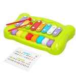 Inicia a tu pequeño en el mundo musical con este xilófono-piano de la marca CB Toys. Está indicado para niños mayores de 12 meses y con él podrán o bien tocar el xilófono o crear melodías con las teclas del piano. Viene además con 2 partituras de canciones populares sencillas que podrán aprender y enseñar a sus amigos. El sonido que emite los mantendrá entretenidos y les ayudará a aprenderse las notas musicales. Está fabricado en ABS y metal y viene con los bordes redondeados para mayor seguridad.