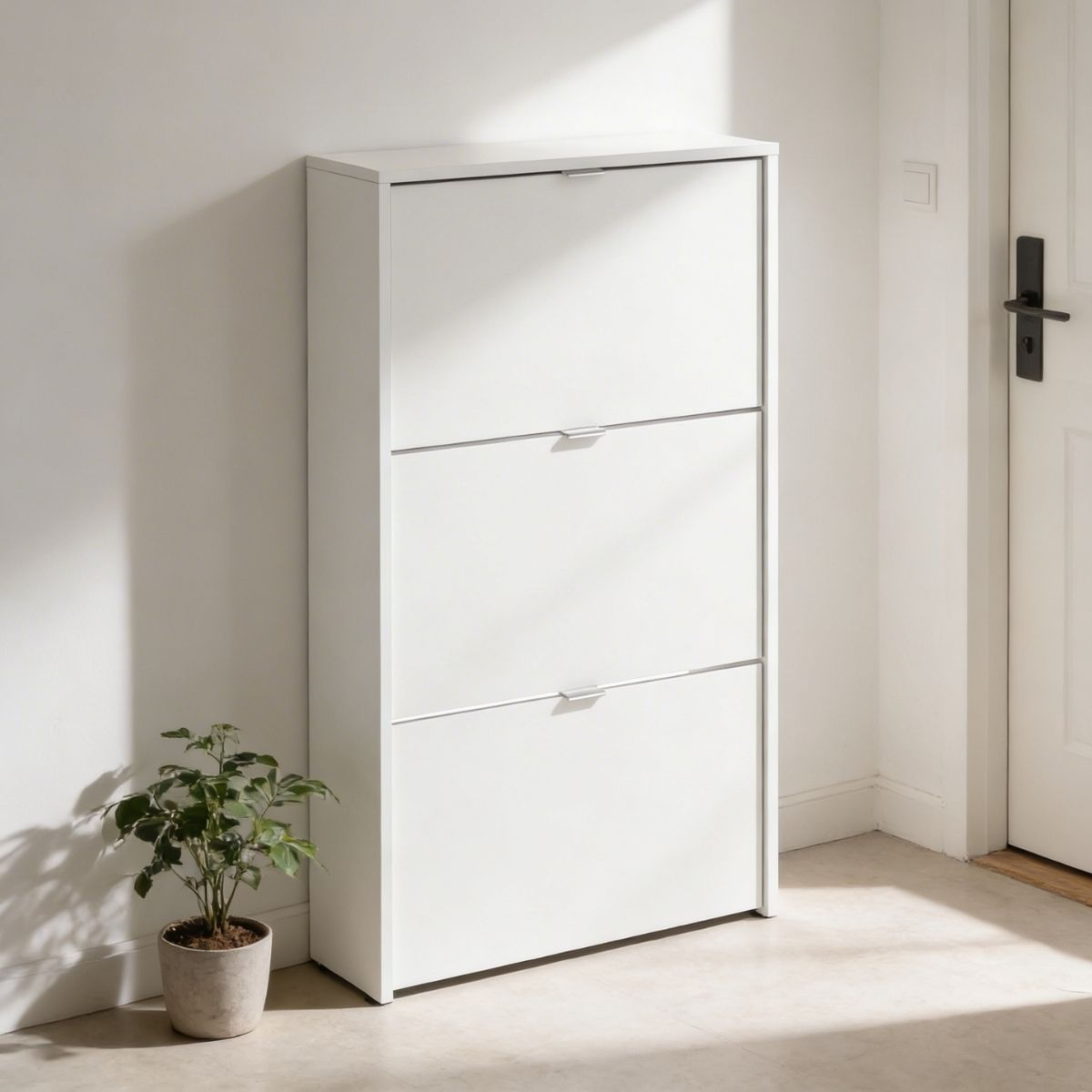Este estupendo armario zapatero modelo Maelys es perfecto para cualquier hogar. Cuenta con tres puertas abatibles con tirador metálico en cada uno. En su interior, cuenta con filas dobles para mayor espacio de almacenaje. Gracias a su diseño sencillo y discreto, podrás colocarlo donde tú elijas. Tiene una capacidad de 18 pares de zapatos aproximadamente, de manera que tendrás siempre todos tus zapatos bien ordenados. Está fabricado con melamina de alta calidad, muy resistente y de alta durabilidad. Además, es muy fácil de limpiar, ya que sólo necesitarás pasarle un paño húmedo. También es de fácil montaje, pero no te preocupes, incluye su manual instrucciones. ¡Consíguelo ahora a un precio de chollo!