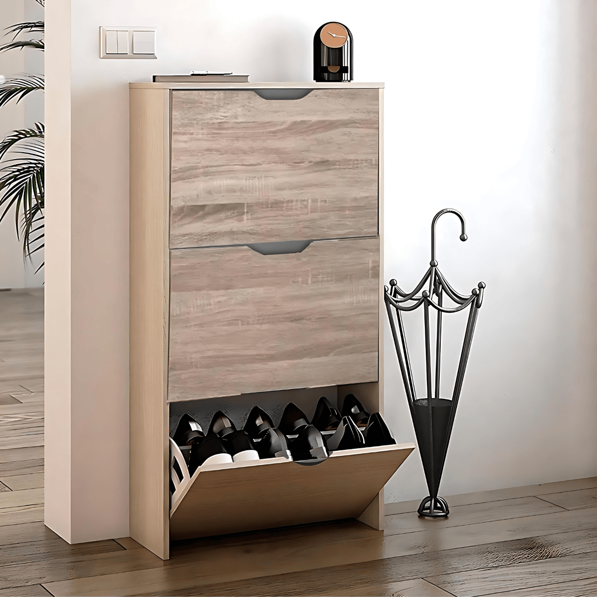 El zapatero Olaya se puede definir en 3 adjetivos: práctico, cómodo y económico. Fabricado en melamina, este zapatero cuenta con 3 amplias puertas y tiene una capacidad total de 18 pares de zapatos. Es ideal para colocarlo en el recibidor, en el dormitorio o en el patio. Con un estilo minimalista y una superficie lisa, este zapatero te dará la posibilidad de guardar tanto el calzado del día a día como el de otras temporadas. Es muy fácil de instalar y de limpiar, por lo que no tendrás que preocuparte por nada. ¡Hazte con el tuyo en Embargosalobestia a un precio bestial!