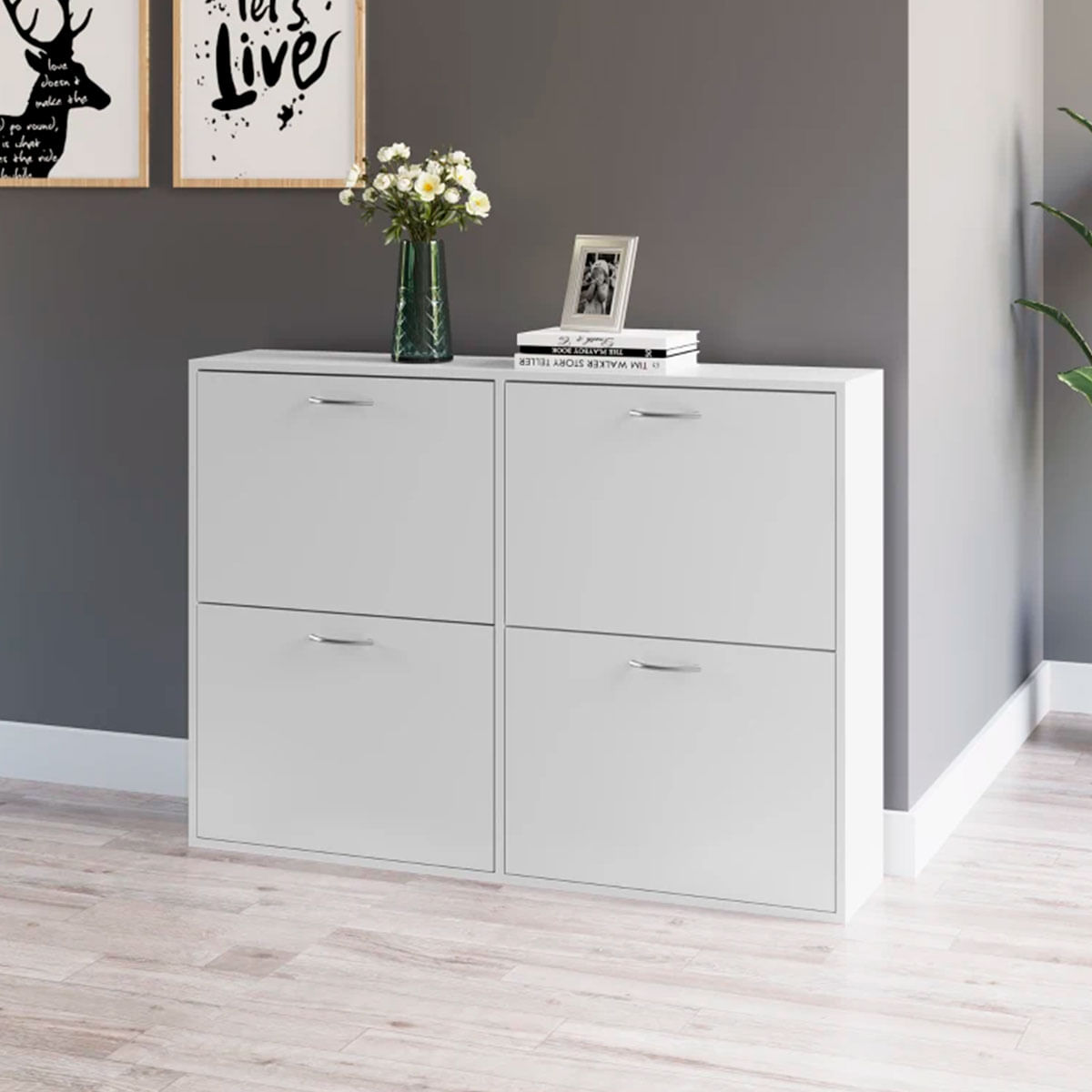 Si quieres aprovechar el espacio disponible en tu pasillo o recibidor, este discreto y compacto zapatero es ideal para situar en habitaciones y estancias pequeñitas. Sus reducidas dimensiones, pero amplio almacenaje lo hace perfecto para guardar de 16 hasta 24 pares de zapatos. Fabricado en melamina de la más alta calidad y formado por 4 cajones abatibles con tiradores, cuyo interior está formado por un estante ajustable en 2 posiciones para que almacenes todo tu calzado sin importar qué tipo de zapato sea, botas, sandalias o chanclas todo quedará perfectamente organizado en el fantástico zapatero Walk de Homcom ¡No te pierdas la oportunidad de darle ese toque elegante y actual que tu vivienda necesita a un precio de locura!
